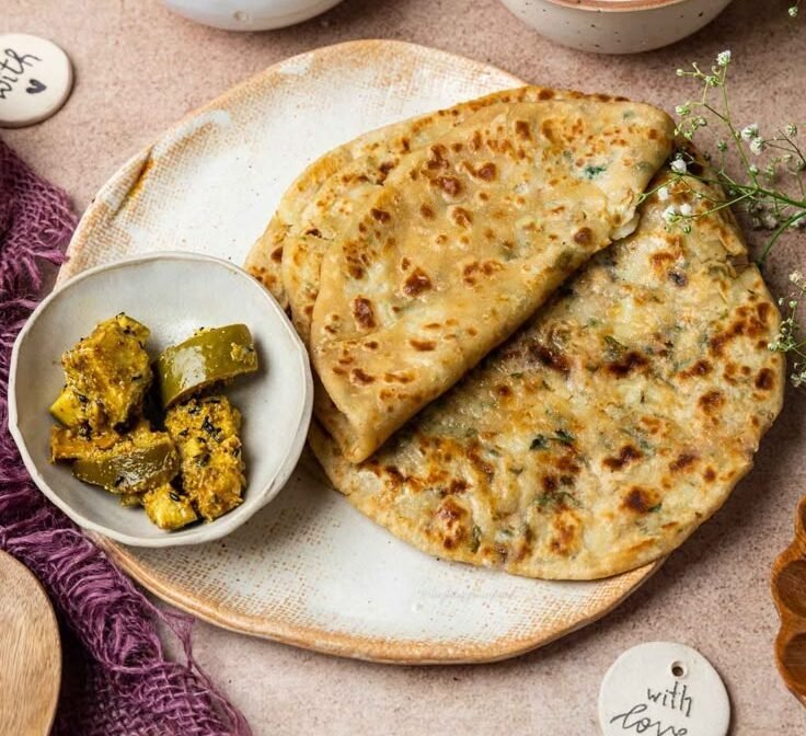 The classic comfort of a spiced potato-stuffed paratha with curd, served in a convenient box.